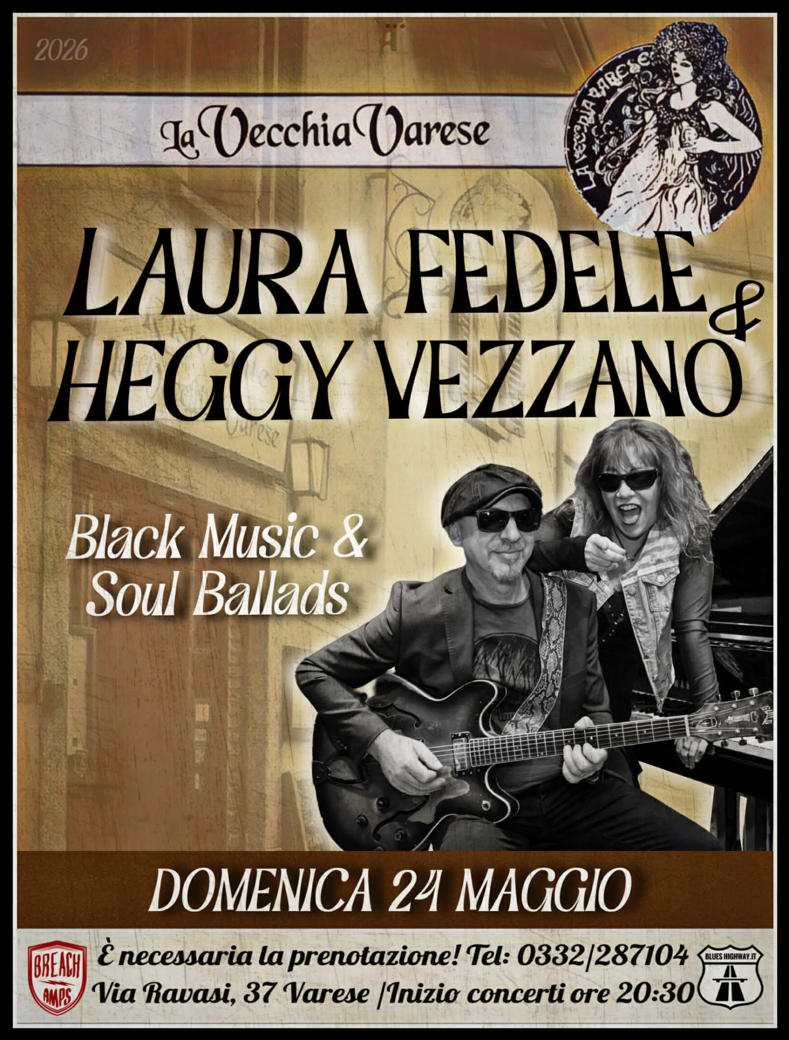 Laura Fedele, sorprendente artista dalle molte facce, incontra Heggy Vezzano, meraviglioso interprete della black music….: ed è subito blues. Con tutte le molteplici sfumature del genere: soul ballads, brani venati di rock, e brani originali scritti da Laura. Cantante, pianista, autrice, docente e, anche un po’, attrice: in una parola, performer. Laura Fedele ha al suo attivo quattordici album, due pubblicazioni didattiche, e un gran numero di concerti in Italia e all’estero. Heggy Vezzano, autentico poeta del blues, ha prestato il suo magico chitarrismo ad artisti italiani e stranieri; tra questi, Andy J. Forest, Syl Johnson, Denise La Salle, Russell Jackson, e molti altri.