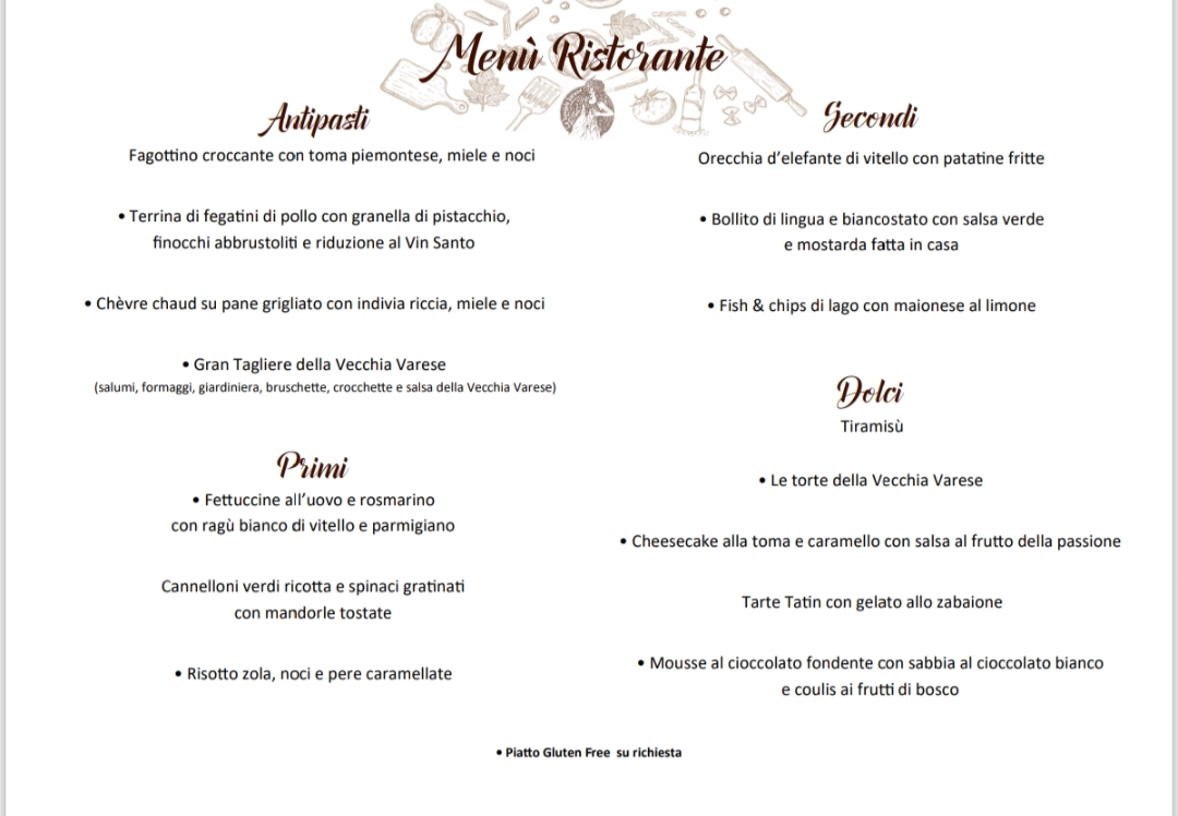 * Piatto Gluten Free su richiesta (in caso di pasta verrà usato un prodotto Gluten Free)